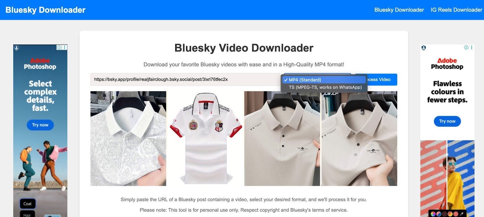 This third-party tool allows you to download videos from Bluesky without installing any software. Please note that this is not an official Bluesky tool, so use it responsibly and follow copyright and platform terms of service.