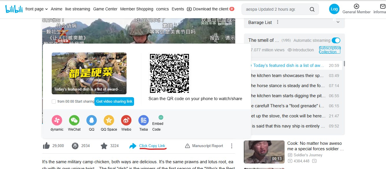 Go to Bilibili and copy the link to the video that you wish to download. To do this, click the share button below the video and copy the URL.