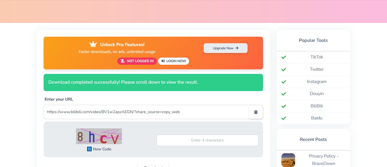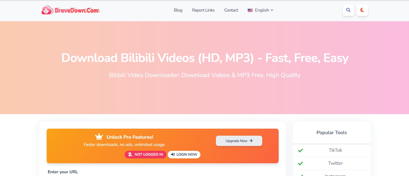 The BraveDown Bilibili Downloader is a free online tool that lets you save Bilibili videos directly from your browser. It works on both desktop and mobile devices.