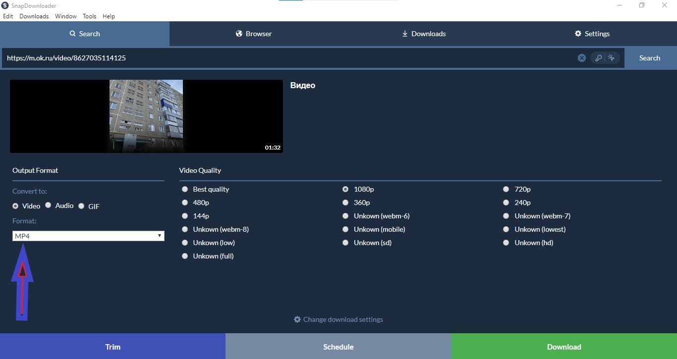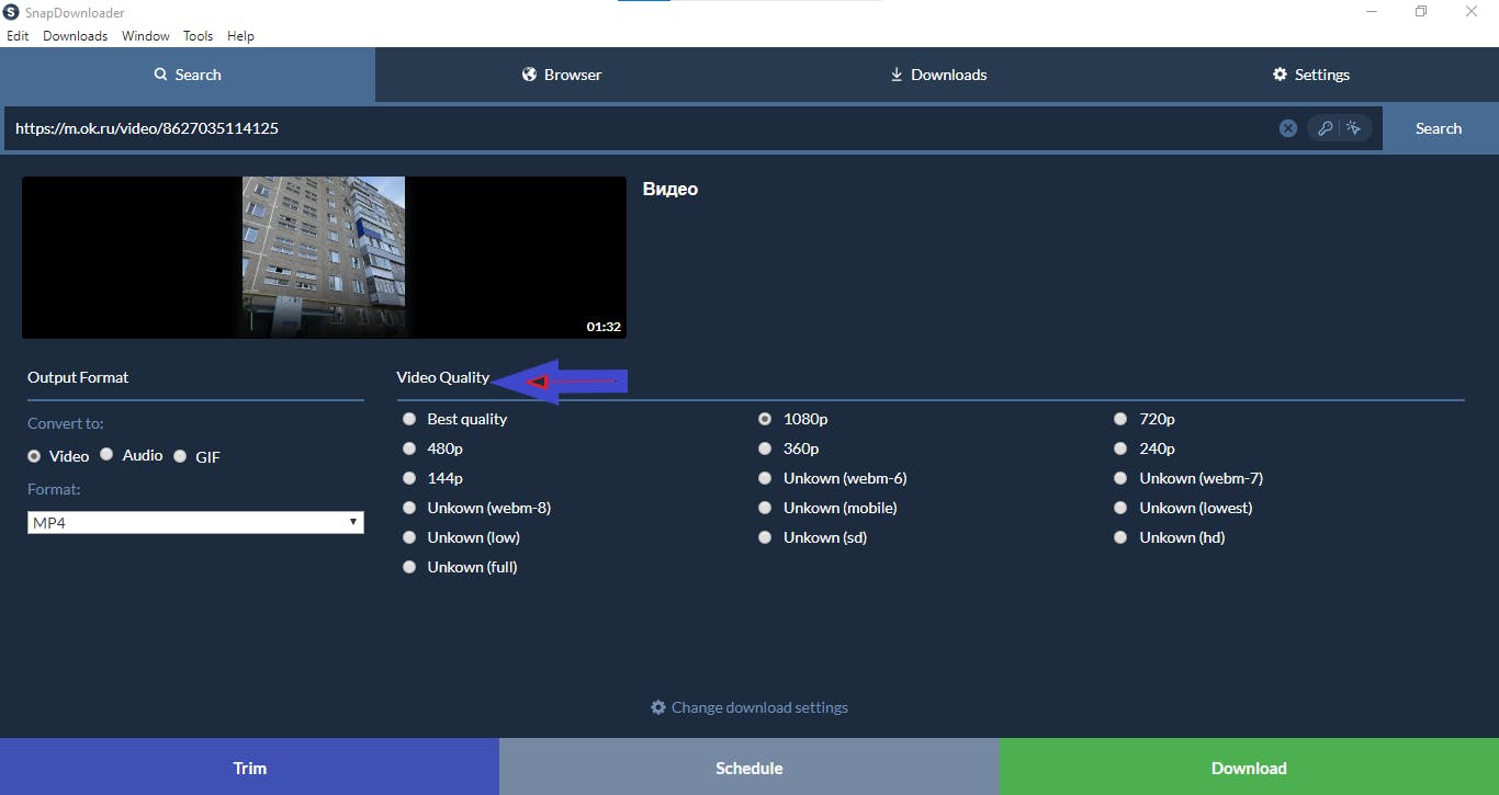 - Choose your preferred resolution and quality: The available options depend on the original upload. SnapDownloader supports resolutions up to 4K.